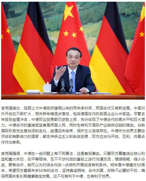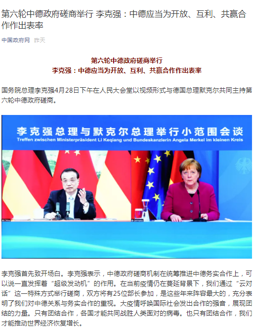 第六輪中德政府磋商舉行 李克強:中德應當為開放、互利、共贏合作作出表率