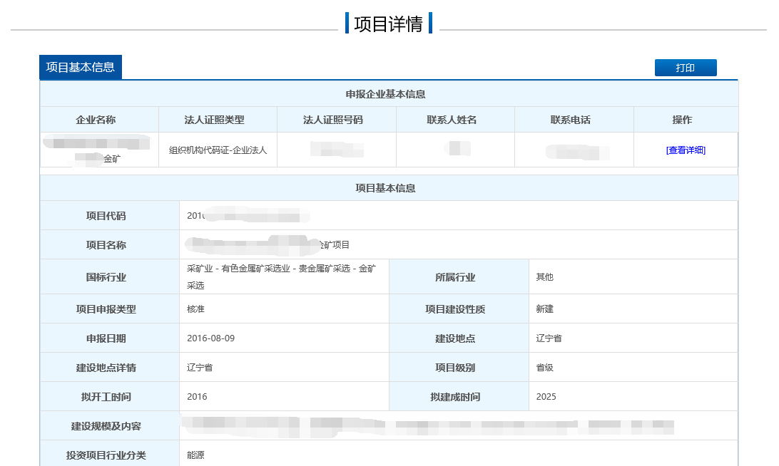 16.在我的項目里點擊項目詳情,會出現當前項目的項目基本信息,并且可以操作打印。