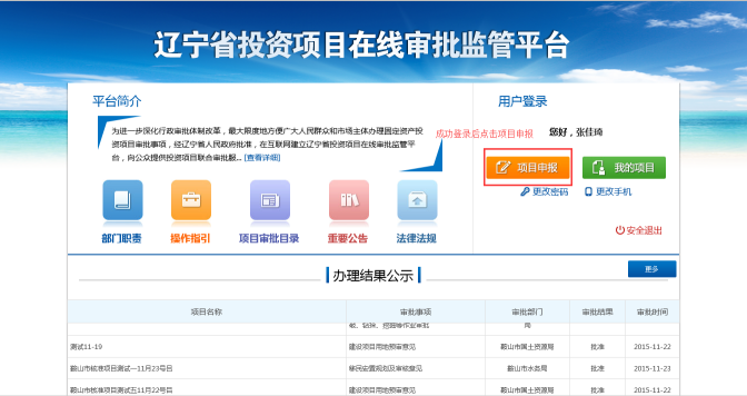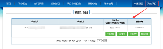 13.完成申報后可以通過平臺中我的項目按鈕,找到當前辦理的核準項目。