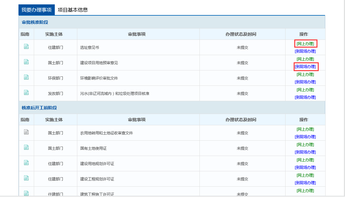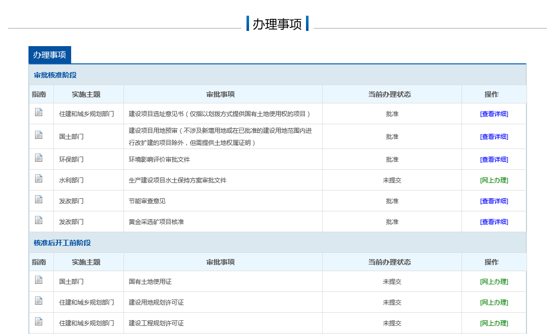 15.在我的項目里點擊辦理事項,會出現當前項目辦理事項的詳細情況。
