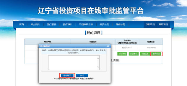 17.在我的項目里點擊撤銷項目,輸入撤銷原因,即可撤銷整個項目。