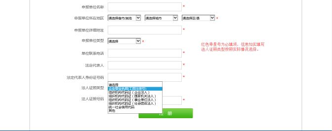 2.用戶注冊界面所有帶紅色星號的為必填項,注冊信息按照實際情況如實填寫