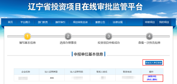 由于上一步選擇了項目類型為核準,所以在填寫信息時紅框內不可修改,在申報單位基本信息中,可以添加多個法人單位信息