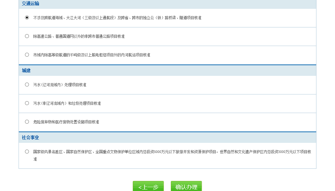 8.提交后進入填報基本信息界面,選擇要申報的核準目錄名稱,點擊確認辦理后進入下一步項目申報。