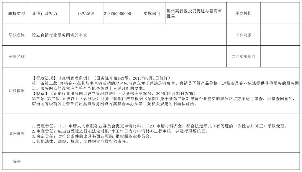 其他行政權力 QTSW00060000 設立直銷行業服務網點的審查