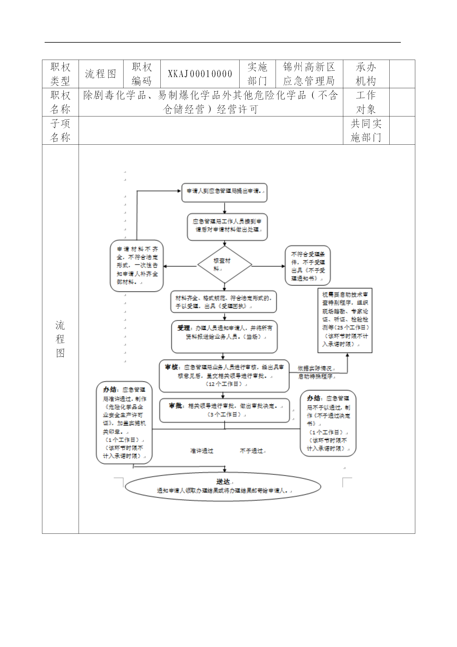 流程圖+XKAJ00010000+除劇毒化學品、易制爆化學品外其他危險化學品(不含倉儲經營)經營許可
