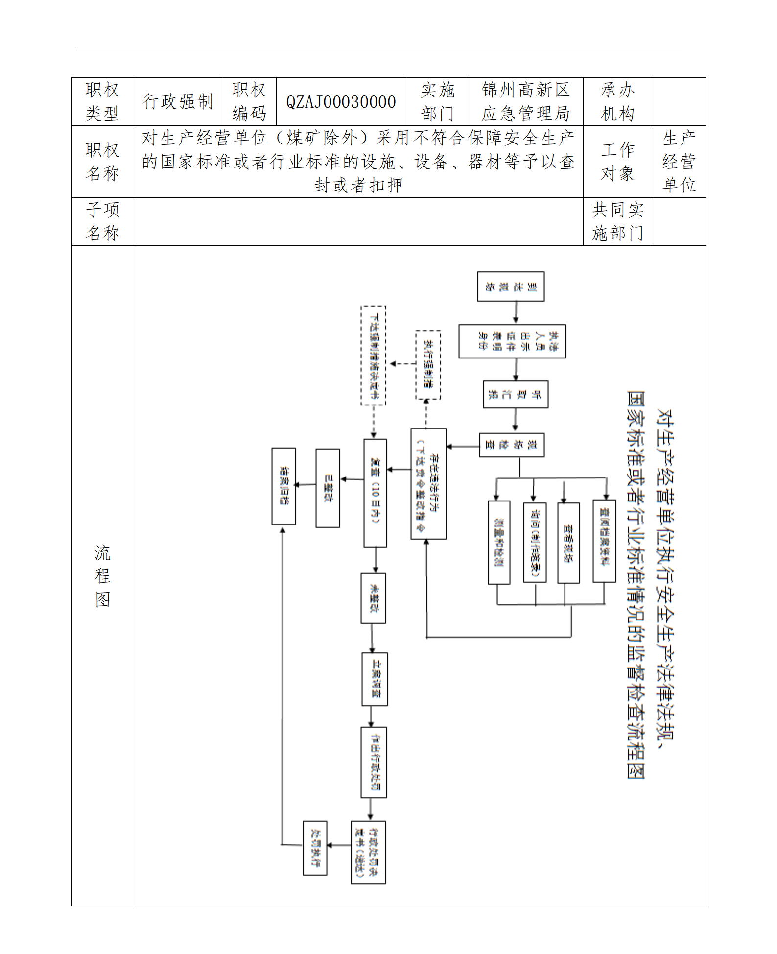 流程圖+QZAJ00030000+對生產(chǎn)經(jīng)營單位(煤礦除外)采用不符合保障安全生產(chǎn)的國家標準或者行業(yè)標準的設(shè)施、設(shè)備、器材等予以查封或者扣押